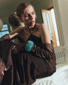Довгі сатинові рукавички з декоративним браслетом із бісеру. Створені як доповнення до сумок колекції, але прекрасно виглядатимуть як самостійна стейтмент-одиниця.
