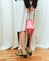 Ніжно-рожева інтерпретація архівного силуету сумки "reticule", створена як ода жіночності та натхненна Гретою Гарбо — іконою краси 1920-х. Оздоблена обʼємними пелюстками із бісеру.