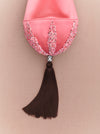 Composition: Satin (100% polyester), artisanal bead embroidery, handmade viscose tassel and natural pearl.