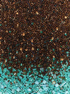 Сатинова сумка-мішечок, ретельно вишита вручну скляним бісером і лелітками у блакитних та коричневих відтінках. Саме такими барвами ми уявляємо джазові клуби тієї епохи — сяйво ліхтарів, димну атмосферу та енергію танцю Чарльстон.